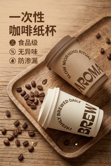光影感与实景感交织,玻璃风杯中咖啡清透浓郁,搭配质朴咖啡豆,简约主义构图传递柔和舒适氛围,轻拟物风格强化视觉质感。