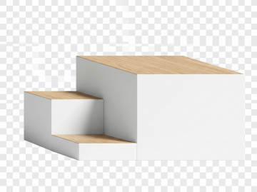 一个具有极简主义3D渲染风格的木制台阶,三阶结构,采用柔和的原木色调,表面呈现自然的木纹肌理和哑光质感。光线从左上方45度角照射,在台阶右侧形成清晰而柔和的灰色投影,阴影边缘有轻微的模糊过渡。整体构图居中对称,背景为纯白色,无其他装饰元素,台阶边缘线条干净利落,展现出简约现代的设计感,立体感强,材质细节真实,视觉上给人稳定、质朴且精致的感觉。