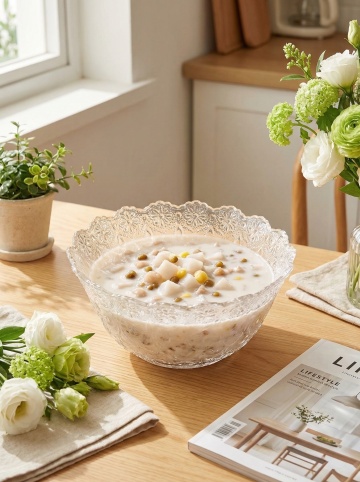 六个透明玻璃碗盛放的酸奶系列素材集合,每个碗中酸奶呈现细腻柔滑的质感和纯净乳白色,分别搭配不同组合的新鲜配料:第一碗铺满切片芒果与薄荷叶,第二碗撒满烤杏仁片与蜂蜜淋酱,第三碗混合覆盆子与全麦麦片,第四碗点缀烤椰片与百香果粒,第五碗堆放蓝莓与燕麦脆圈,第六碗铺陈香蕉片与奇亚籽。所有碗具在纯白色纯色背景上呈2×3网格规整排布,采用明亮柔和的顶光照明,形成清晰自然的投影,保持高清晰度的食品摄影风格,突出食材的新鲜色泽与纹理细节,整体画面简洁干净,充满健康清新的氛围。