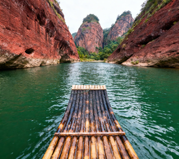 背景是层峦叠嶂的青绿色山脉,山间薄雾缭绕,远处田野呈现柔和的色块,阳光透过枝叶洒下斑驳的光影,整体色调温暖清新,画面充满丰收的治愈感