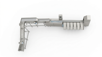 现代化工业场景,蓝色为主色调,清新明亮的光线,干净整洁的生产线,透明玻璃幕墙外是蓝天白云,绿色植物点缀在车间角落,机械臂精准运作,地面反光如镜,整体氛围充满科技感与希望
