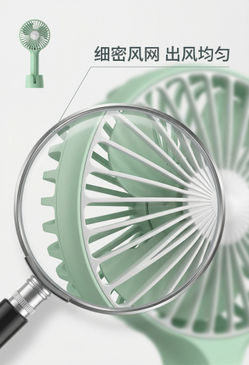 六个不同配色、不同样式、不同材质的桌面小风扇,采用简洁现代的设计风格,白色纯净背景,风扇排列整齐形成有序的视觉节奏,每个风扇保持原图中圆形扇叶、简约支架和稳固底座的基本结构特征,光影处理柔和自然,高光与阴影过渡细腻,展现出产品清晰的轮廓和材质质感,整体画面干净利落,突出风扇主体的设计细节与色彩差异,具有产品展示图的清晰明亮特质。