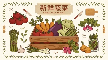 扁平风设计,清新感十足,超级符号风呈现食材元素,简约现代。