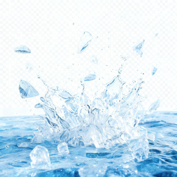 一张高清晰度的水花摄影图片,画面主体为形态改变的动态水流,呈现出不规则的波浪曲线与破碎的水花形态,水珠大小不一,悬浮于水中并向四周飞溅,水流边缘锐利清晰,内部呈现半透明的渐变蓝色,高光区域明亮耀眼,阴影部分则深邃幽蓝,整体光影对比强烈,背景为纯白色,营造出纯净、清爽、富有动感的氛围,水花的运动轨迹自然流畅,展现出液体的张力与流动性。
