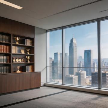 现代室内环境中安装的高清晰度玻璃窗,窗框采用哑光黑色金属材质,具有完全不同于原始样式的独特构造设计,窗格布局新颖别致,整体呈现出简约而时尚的现代风格,透过玻璃可以看到窗外清晰的城市景观,包括高楼大厦、树木和街道,光线明亮柔和,玻璃表面干净透明,反射出室内部分景象,整体画面给人一种简洁、通透、开阔的视觉感受。