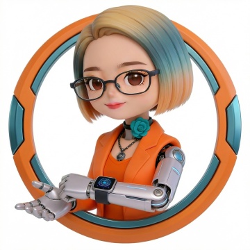 未来感与科技感交融的软3D机器人,拟人化设计搭配霓虹蓝光眼,卡通风格萌趣十足,塑料质感光滑细腻,充满童趣与未来气息。