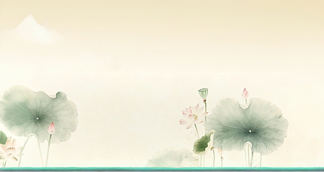 夏季水墨画面,写意清雅风格,夏日荷叶荷花元素,淡墨晕染,横幅构图详情