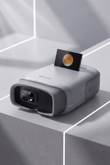 赛博朋克风3D渲染,未来感十足的摄像机置于金属基座,霓虹红光交织,光影与体积感强烈,科技酷炫氛围扑面而来。