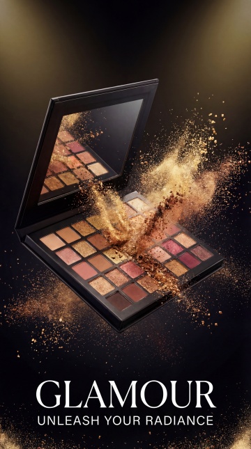 柔和感与舒适感交织,清新雅致的3D风彩妆盘,金属质感外壳搭配木雕风底座,樱花点缀,呈现唯美的实景感。