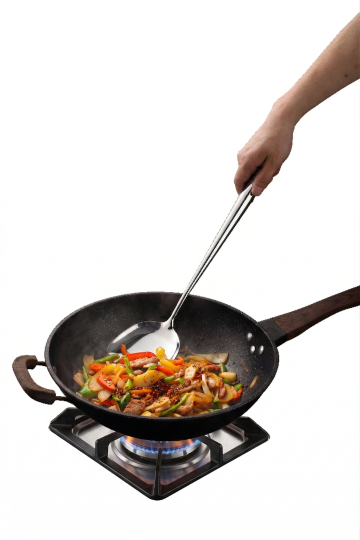 实景感与质朴感交融,木质纹理与柔和暖光营造温馨舒适氛围,轻拟物风设计搭配浮雕质感锅具,现代简约中透出木雕般的细腻,尽显居家烹饪的温暖仪式。