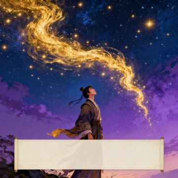 梦幻古典插画风,情侣在星空下相依,超现实桥景,浪漫七夕氛围。
