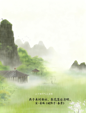 水墨风与工笔风交融,清新唯美,大字“立春”点题,柳枝轻拂,燕语呢喃,樱花烂漫,尽显中式春日诗意。