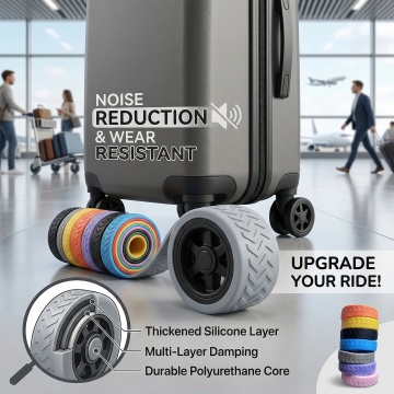 一个银色的硬质行李箱,具有金属质感的外壳,表面有垂直的细条纹设计,顶部配有银色伸缩拉杆,正面有一个矩形的锁扣装置,箱体侧面有银色的提手,底部装有四个黑色万向轮,整体呈现出简洁、现代、商务的风格,高光泽度的表面反射出柔和的光线,立体感强,放置在纯白色的背景上,构图居中,突出行李箱的主体形态和细节特征,适合作为产品素材展示。