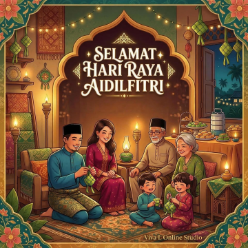修改海报文字,将主标题“欢度开斋节”改为英文“EID AL-FITR”,保留原图深蓝色背景、黄色弯月、清真寺剪影、伊斯兰花纹等全部设计元素,不改变整体风格和排版