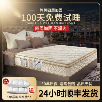 3D重拟物风床垫广告,融合奢华实景感与面料质感,突出舒适体验与促销信息,夜景酒店背景增强高端氛围。