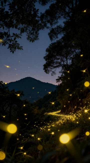 虚拟自然场景,萤火虫点缀,营造夏日夜晚的神秘与浪漫