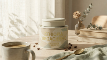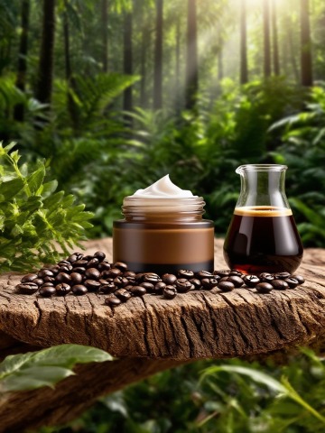 光影感与实景感交织,玻璃风杯中咖啡清透浓郁,搭配质朴咖啡豆,简约主义构图传递柔和舒适氛围,轻拟物风格强化视觉质感。