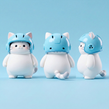 3D卡通风格,蓝色小猫拟人化设计,毛发生长细腻,可爱感十足。