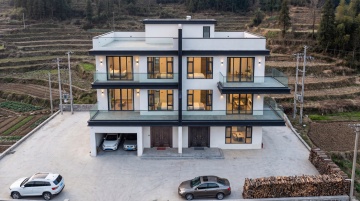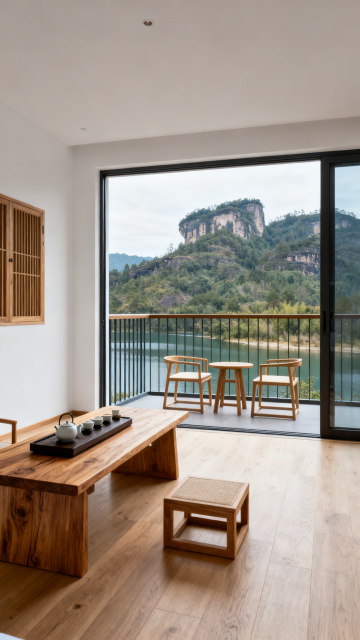 中式庭院,灰砖黛瓦,水墨意境。几何构图,石刻质感,静谧深远,雾山隐现,东亚古典美学与实景交融。