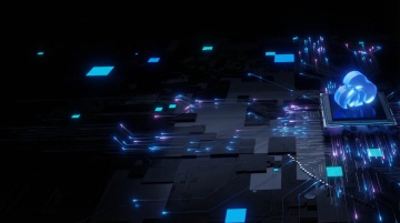 未来感与科技感交织的3D玻璃风设计,清透几何线条环绕AI云图标,光影流动凸显体积感,虚拟现实氛围中展现简约主义美学。