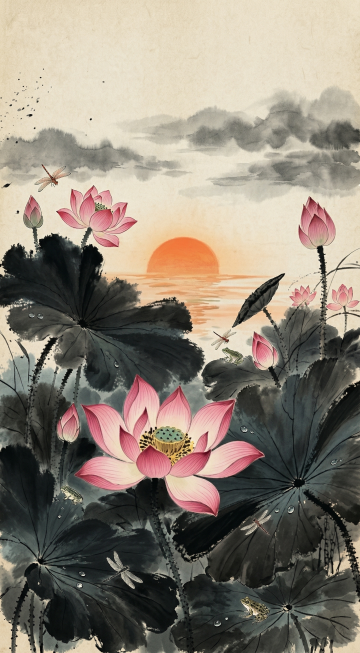 中式古典梦幻,工笔风虚拟自然,水墨意境山水画卷。