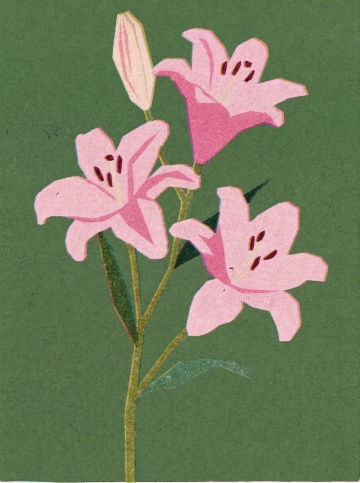 清新插画风百合花,轻拟物设计,简约优雅,适合春季主题。