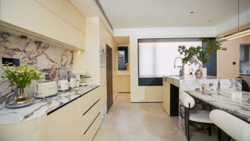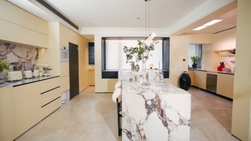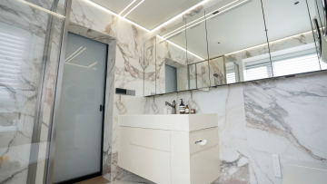 极简主义浴室,木雕风与石刻风融合,暖光营造舒适、柔和、温馨的现代空间感。