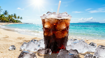现代感3D风设计,清爽冰块与碳酸饮料碰撞,光影效果突出,轻拟物风格展现夏日清凉。