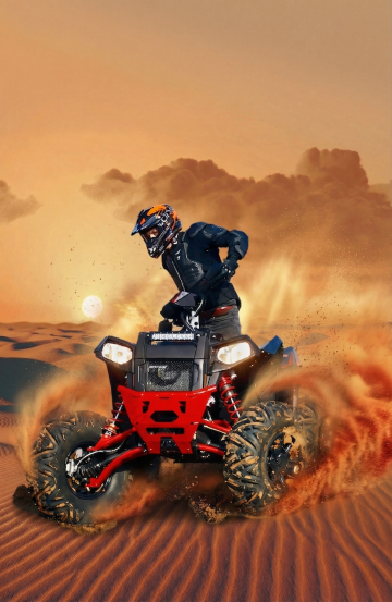 卡通风格插画,一位戴着橙色头盔的男性正在骑红色自行车,他穿着蓝色短袖T恤和黑色短裤,戴着蓝色手套和蓝色运动鞋,身体前倾,双腿蹬踏,自行车车轮为黑色辐条轮,整体画面简洁明快,色彩鲜明,线条流畅,无背景,人物表情略带微笑,姿态充满动感。