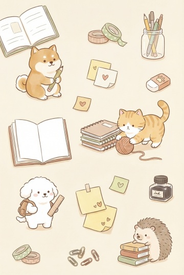 六个不同造型的猫和狗的系列素材集合,采用简约可爱的手绘插画风格,规整排布在纯色背景上。每对猫狗都有独特的互动姿势:一对依偎着看向远方,一对正在玩耍毛线球,一对分享食物,一对相拥而眠,一对好奇地观察蝴蝶,一对开心地奔跑。保持圆润的线条、柔和的色彩过渡和温暖的氛围,每幅画面都有不同的整体色调,如粉色、蓝色、黄色、绿色、紫色和橙色。