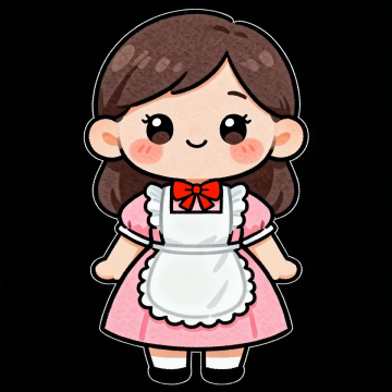 可爱感十足的卡通插画风女孩,拟人化设计搭配描边线条与柔和噪点,粉红裙装配白色围裙,节日氛围温馨萌趣。