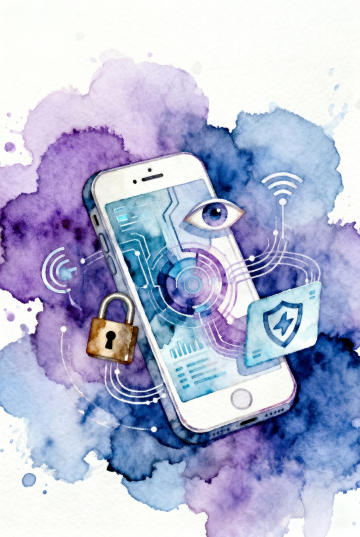 卡通感插画风,拟人化人物手持放大镜探索机械齿轮与盾牌符号,扁平设计搭配噪点纹理,呈现科技与安全主题的创意视觉。