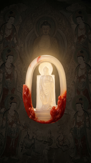 黄金吊坠产品为主体,在一块乌木上,周围放着很多金色枫叶,远处是热带雨林和树的粗支,背景模糊,整体氛围暗色神秘