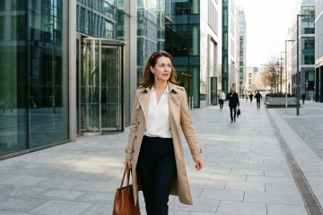 巴黎街角咖啡馆,优雅女性身着米色亚麻衬衫与白色半裙,轻拟物风面料质感,简约主义设计,文艺感与时尚感交织,实景感十足。