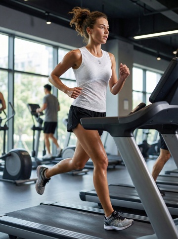 欧美女性头戴图中的玳瑁花纹发箍,远景拍摄,真实自然的效果,运动休闲穿搭,背景为公园运动场场景,画面真实有质感,无违和感