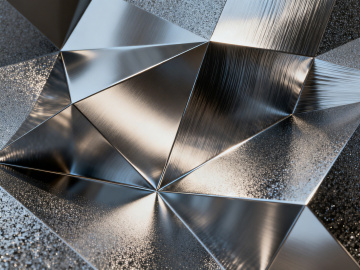 具有高度金属质感的不锈钢背景,整体呈现银白色调,表面覆盖着完全不同于原图的精致几何花纹,花纹线条细腻且均匀分布,光线从顶部中央位置柔和洒落,形成明亮的高光区域,向四周逐渐过渡到浅灰色的阴影,营造出平滑且带有微妙光泽的金属表面效果,整体视觉干净利落,具有现代工业设计感。