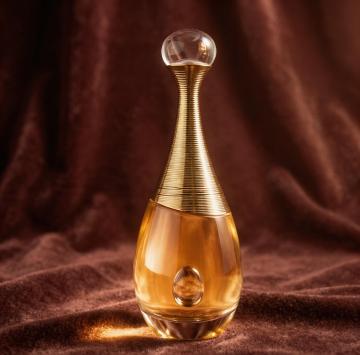 奢华感与优雅感交织,3D重拟物风设计,简约主义玻璃瓶身搭配金属喷头,面料风丝巾点缀,尽显高端质感。