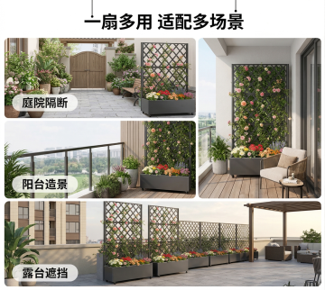 现代简约风格,3D重拟物风设计,金属与玻璃质感结合,营造清新自然的实景感。绿植攀爬格栅,搭配柔和色彩花卉,呈现舒适宜人的庭院空间,适配多场景使用。