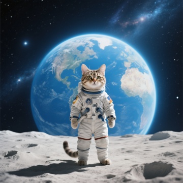 未来感与科技感交织的3D虚拟现实场景,宇航员伫立月面,仰望梦幻紫调星球,光影流动,粒子飘散,玻璃质感星空,超现实主义美学展现宇宙的广阔与神秘。