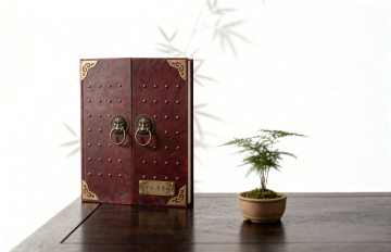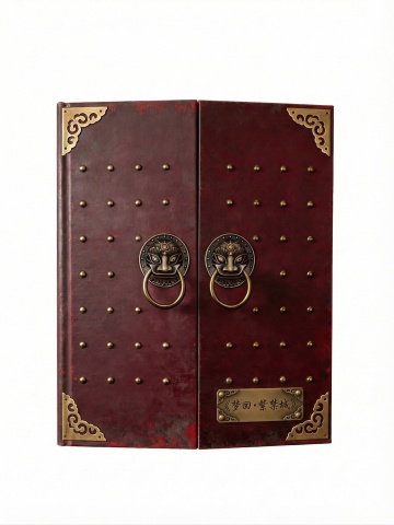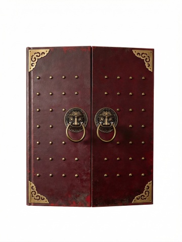 中式古典红门,3D重拟物设计,鎏金铜钉与狮首门环,金属质感十足,尽显复古华贵。