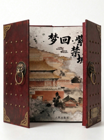 复古中式3D重拟物门扉,鎏金浮雕狮环与铆钉细节,金属质感十足,古典韵味浓厚。