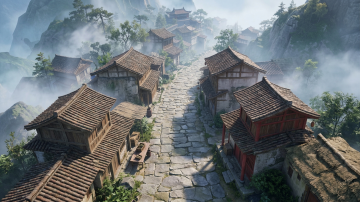 中式古典庭院,3D重拟物风格,石刻浮雕细节精致,光影交织静谧深远,虚拟现实呈现传统建筑之美。