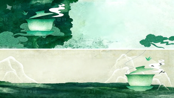 中式工笔风与水墨意境交融,撕纸拼贴手法营造质朴静谧氛围,朦胧山影与枝叶点缀,呈现古典柔和之美。