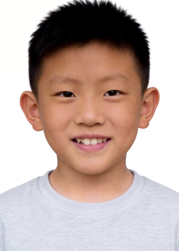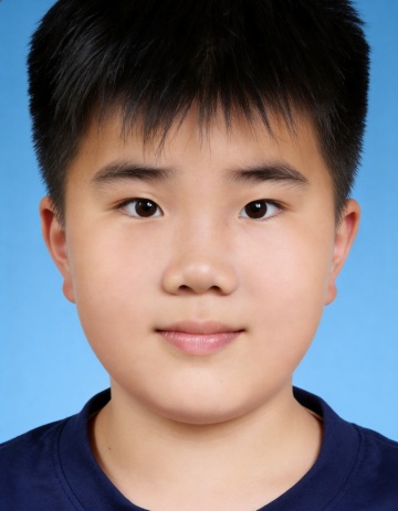 保留第一张图中人物发型、脸型、年龄特征生成标准样式纯正面儿童证件照;人物主体严格居中,头部大小与位置严格对齐第二张图,双肩水平平衡,面部中轴线对齐画面中心,正视前方;标准儿童证件照构图,人物绝对居中,头顶上方距离上边缘高度10%,下巴距离画面下边缘高度36%,人物主体占比约72%;肩部平展与画面水平轴平行;头部占比严格对齐第二张图;提亮肤色,消除暗沉,清透裸妆,隐形毛孔,均匀肤色,唇色自然提亮;肤色白皙细腻,原生轻透肤质;眼神澄澈,看向镜头,气质自信,嘴角微微上扬表情自然;耳廓可见度一致;肩部平展,肩线与画面水平轴平行;头肩比例协调呈现;免冠,不戴帽子,无头饰,无发带,不戴眼镜,无胡子,面部无痣,消除面部瑕疵,柔和正面顺光均匀柔光,面部明亮无硬影,背景均匀提亮,画质清晰,零噪点降噪;面部清晰;背景亮度均匀统一;高清锐利画质,细节清晰可见;零噪点处理;色彩还原自然,均匀柔和布光,无明显阴影,面部光影干净,柔光正面打光,自然光影过渡,皮肤质感细腻,哑光质感,标准焦段50mm,纯正面,入境范围头部至胸部以上区域,F/4光圈(兼容F/2.8-F/4区间),平视视角(镜头与人物视线完全齐平),正视视图;人物绝对居中(居中构图),位于画面中心;严格限定标准证件照规格;视线水平(瞳孔连线与画面水平线平行);双耳对称露出,双肩水平且平衡,头部占比严格对齐垫图,禁止大头照(画面铺满画布,无边框留白);专业证件照质感,高清人像质感,细腻皮肤纹理,严格按照第一张图内容生成,分辨率4K,身着淡绿色高领长袖针织上衣,极简纯色白色背景,背景亮度均匀且统一(哑光质感),画面比例5:7