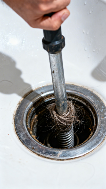 一张高质量写实风格的水龙头特写摄影,主体为亮银色镀铬双把手水龙头,水流从弯曲的出水口优雅地呈细长弧线注入下方光洁的白色陶瓷水槽,水花在盆底溅起细小涟漪并形成水膜反光。背景采用柔和的浅景深处理,左侧可见木质窗框边缘透入的温暖自然光,右侧模糊的绿色植物盆栽增添生机,整体色调以银白、浅木色、淡绿为主,营造出温馨、洁净、自然的卫浴或厨房氛围,光影过渡细腻,金属表面有清晰的高光和轻微阴影,突出水龙头的精致质感与水流的动态美感。