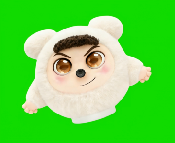 软3D风格的可爱卡通小熊,毛发生长质感细腻,大眼萌脸充满童趣,绿色背景突出角色,适合节日氛围表达。