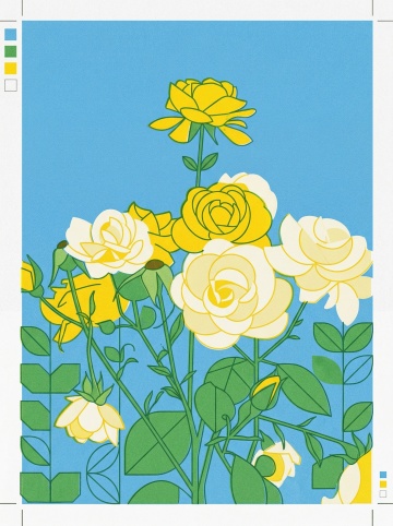 极简风格玫瑰图案系列,由6个完全不同造型的玫瑰花组成,每个玫瑰均保持原始的线条艺术特征,包含完整的花瓣、花茎和叶子元素,整体采用纯色背景,每个玫瑰分别填充不同的颜色,6个玫瑰图案以规整的网格排布,保持统一的简约设计风格和视觉平衡感。