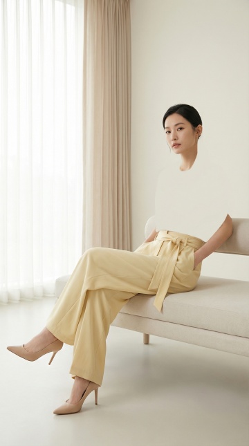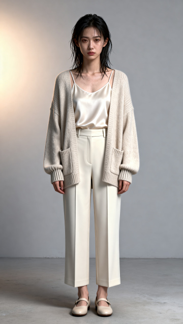 清新自然的性冷淡风穿搭,柔和色调与实景光影交织,轻拟物质感面料展现简约主义美学,营造舒适惬意的夏日氛围。