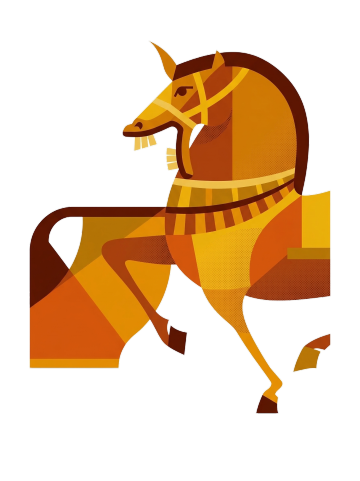 古典感与国潮风交融,黑骏马身披鎏金刺绣鞍鞯,几何线条勾勒优雅轮廓,扁平插画风格尽显中式奢华气韵。