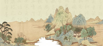 古典中式工笔风,水墨淡雅,师徒共学,山水环绕,意境深远。